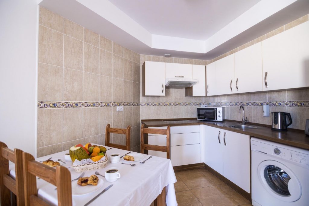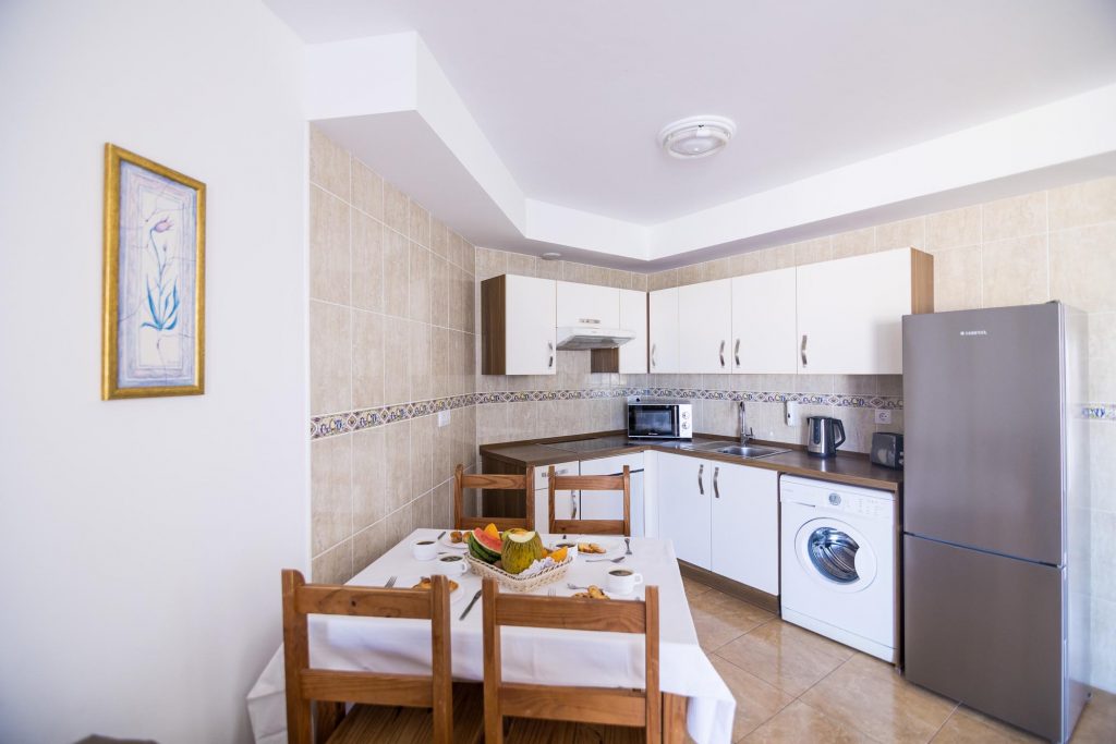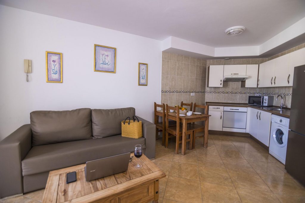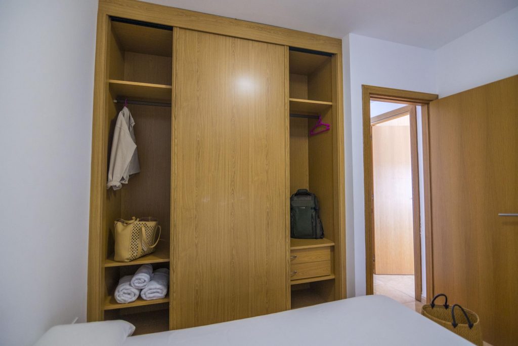 Los apartamentos son espaciosos, luminosos y están equipados y pensados para su confort e intimidad y para que disfrutes la estancia como en su propia casa. El dormitorio principal tiene una cama de matrimonio y un amplio armario ideal para largas estancias o para familias. Los apartamentos de dos dormitorios cuentan, además, con otro dormitorio con camas individuales. Cada alojamiento cuenta con WIFI gratis, un salón-cocina totalmente equipado y un sofá-cama.