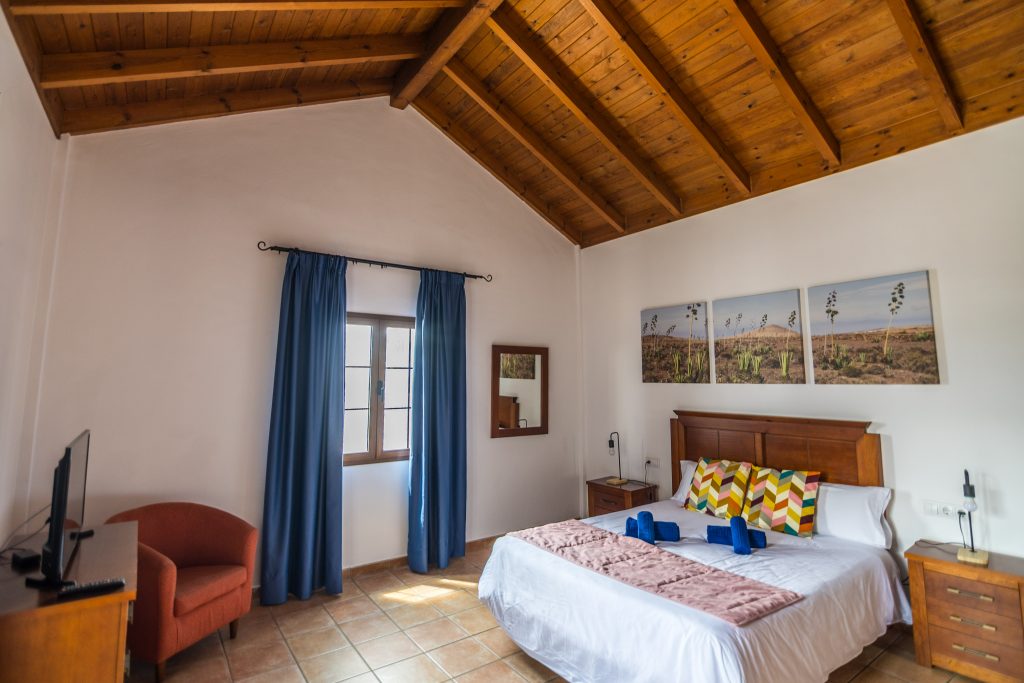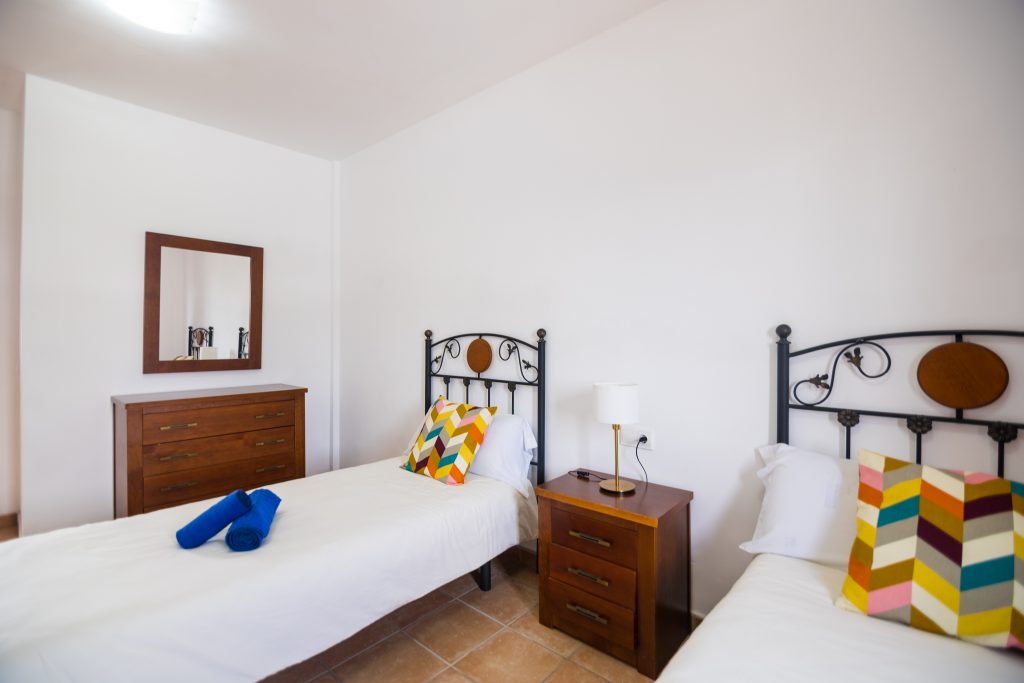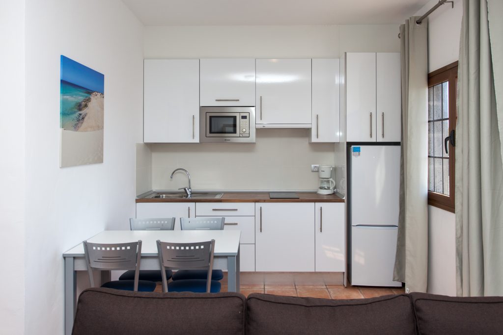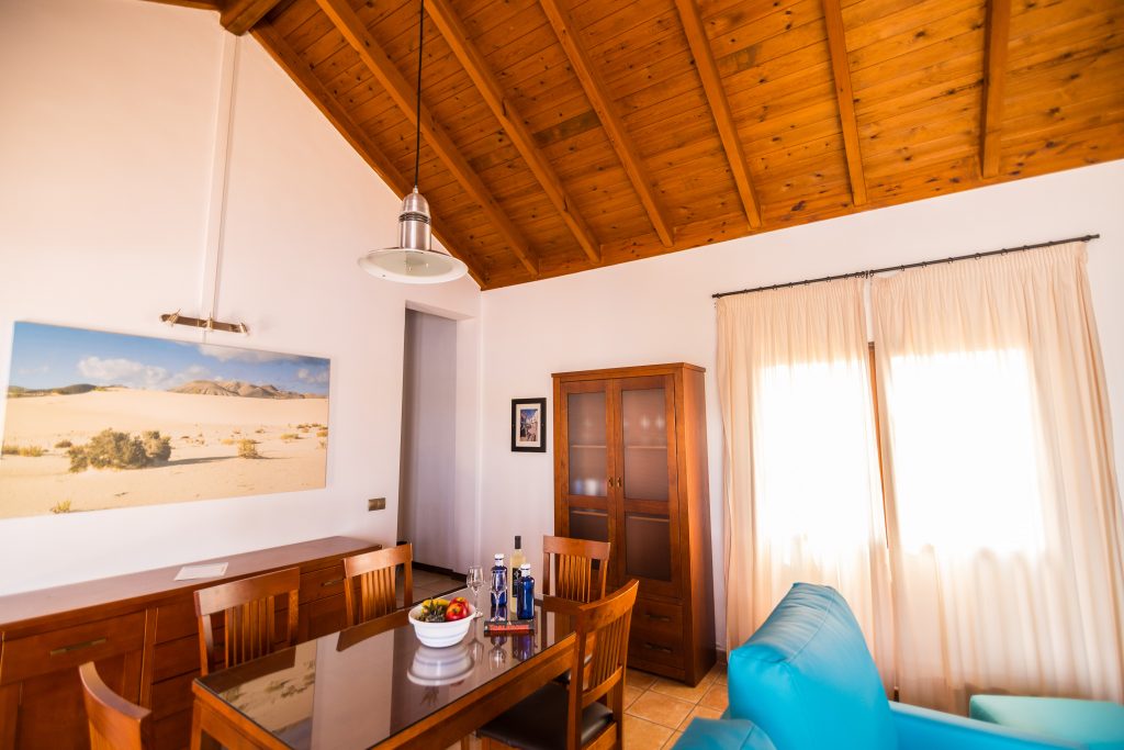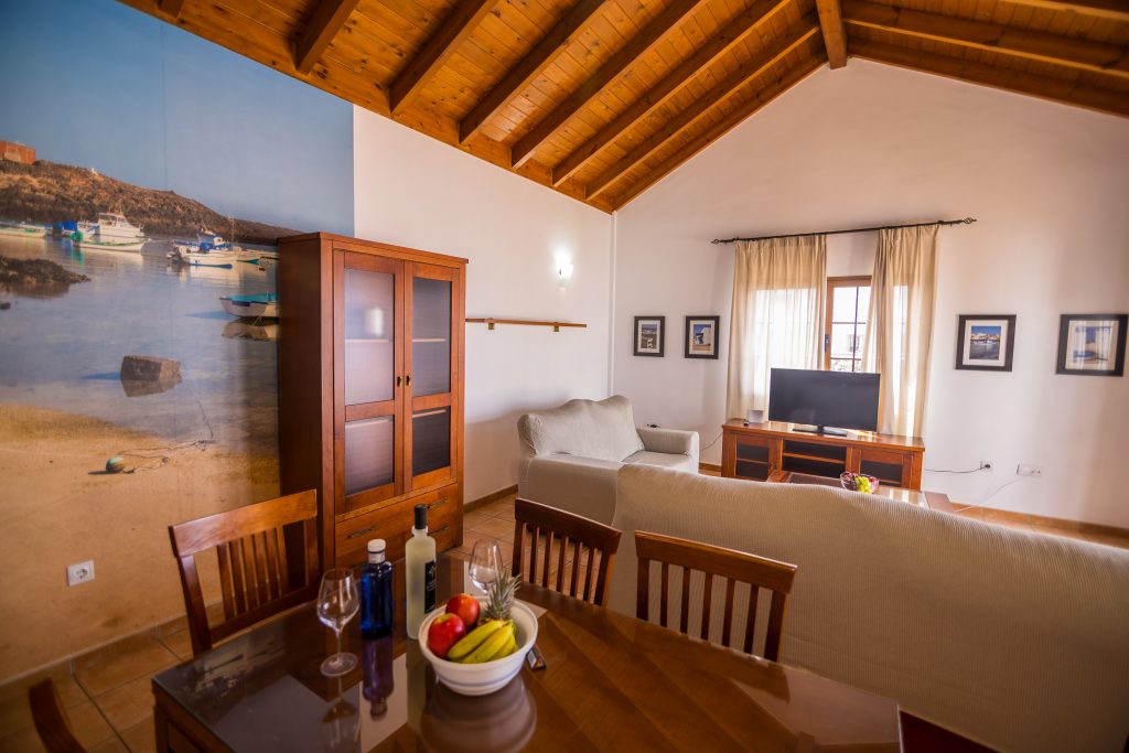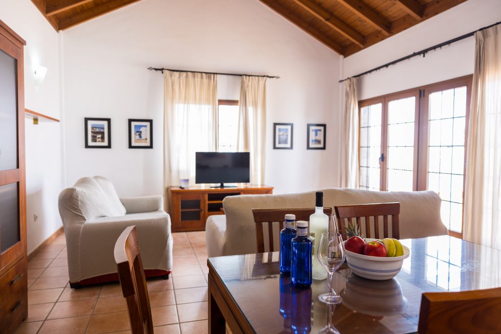 Los apartamentos son ideales para estancias en pareja , en familia o solo. El interior sorprende con sus amplias estancias de suelos de terracota, así como por su decoración, que combina materiales rústicos y cálidos. El dormitorio principal, dotado con una cama de matrimonio, juega con el contraste entre el mobiliario de madera y una decoración moderna, ejerciendo así una sensación agradable inmediata de descanso y tranquilidad. Cada alojamiento cuenta con cocina totalmente equipada para que te sientas como en casa. En el luminoso salón con cristaleras que da acceso a la terraza encontrarás un espacio de tranquilidad inmejorable, equipado además con un sofá cama, aire acondicionado, una mesa de comedor y una TV plana de 32 pulgadas. El baño es amplio, luminoso y de diseño con alicatado rústico.